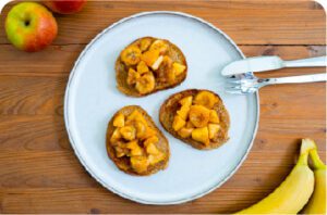 Tostadas caramelizadas de manzana y banano con canela